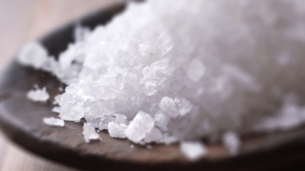 Primer plano de sal haciendo referencia al consumo de sal durante el embarazo: recomendaciones y cuidados para la salud materna y del bebé